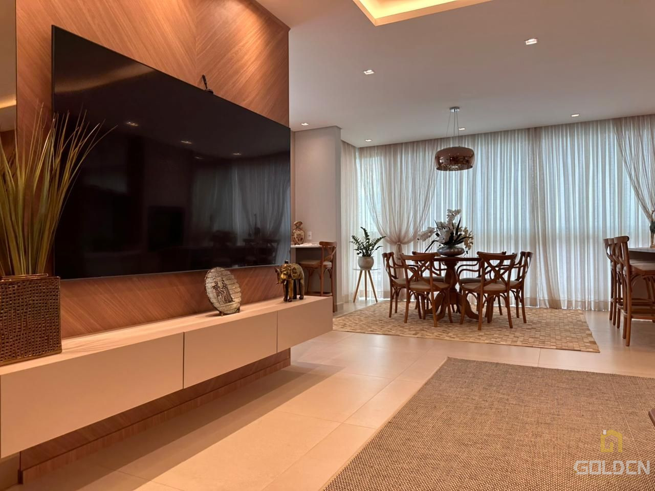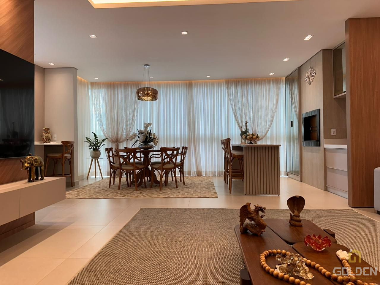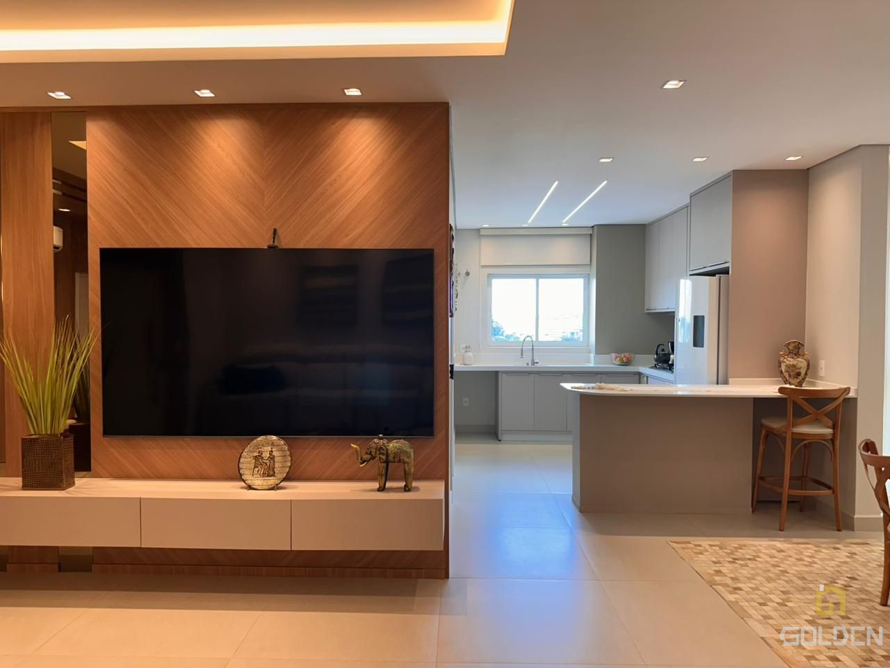 ✔️ Sala de estar, jantar e cozinha em conceito aberto