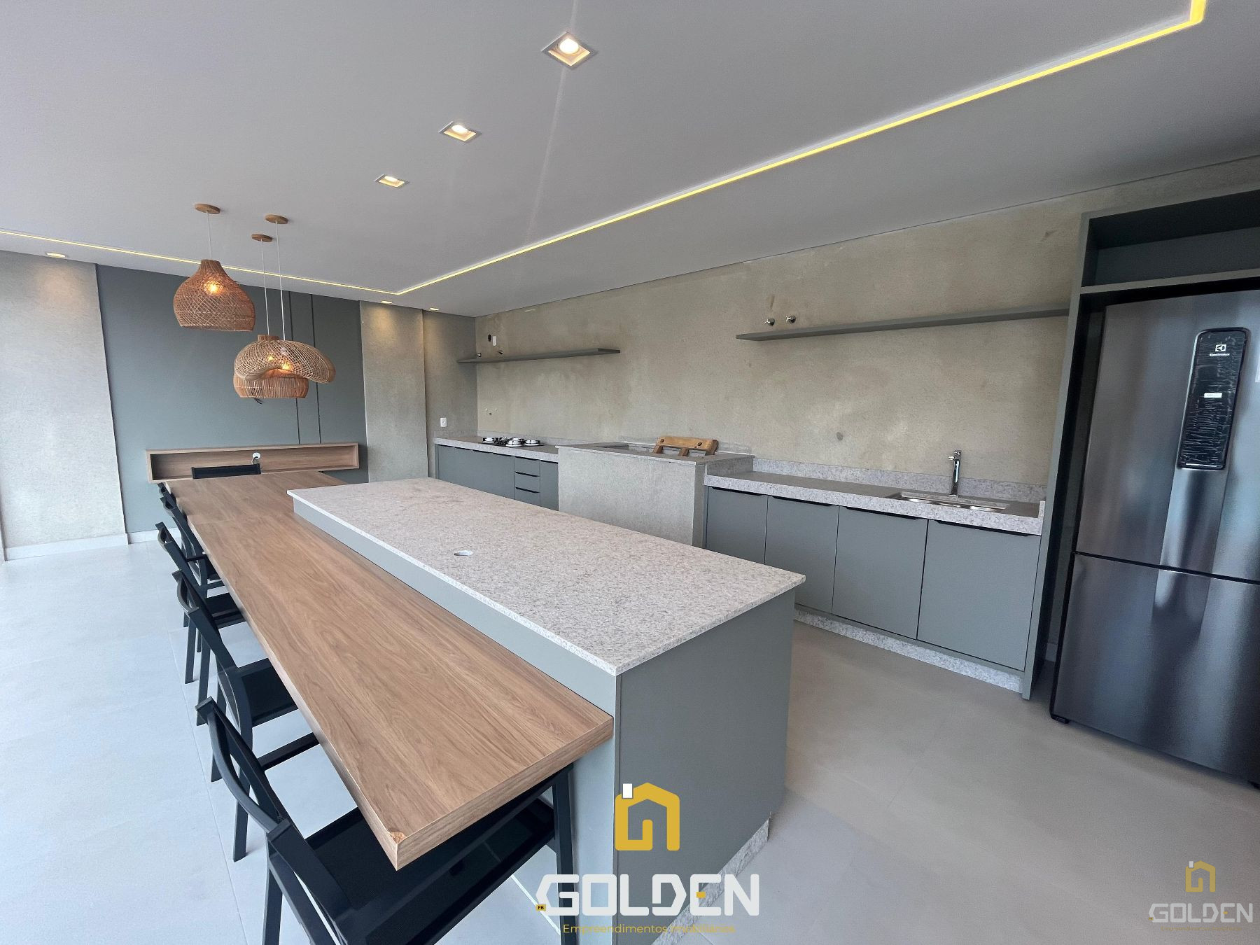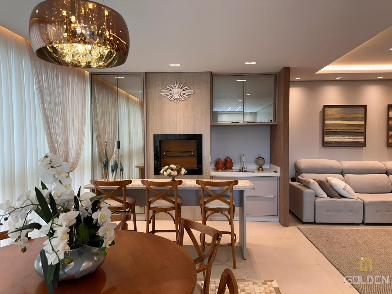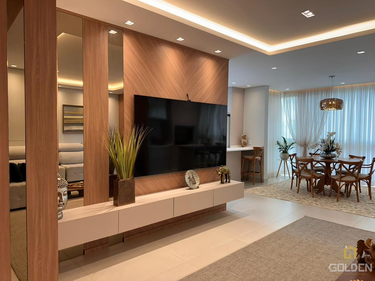 ✔️ Sala de estar, jantar e cozinha em conceito aberto