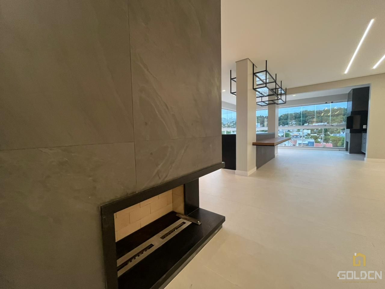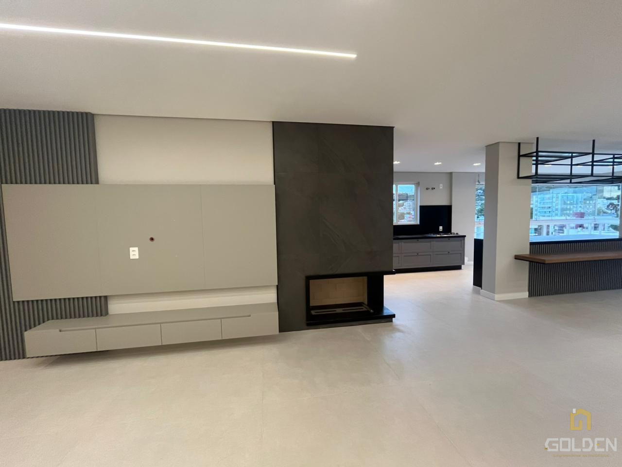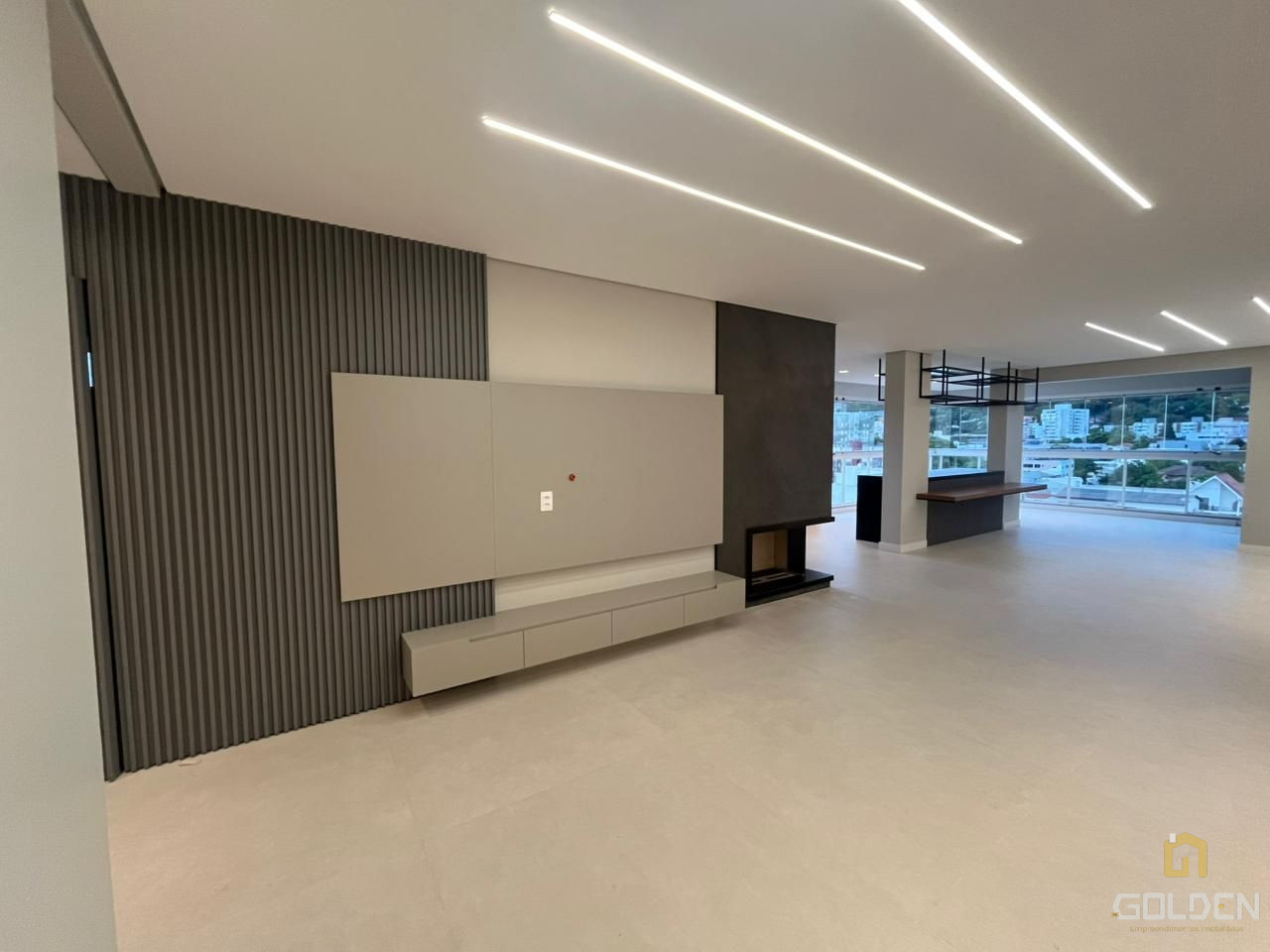 🔥 Sala de estar com painel e lareira a gás
