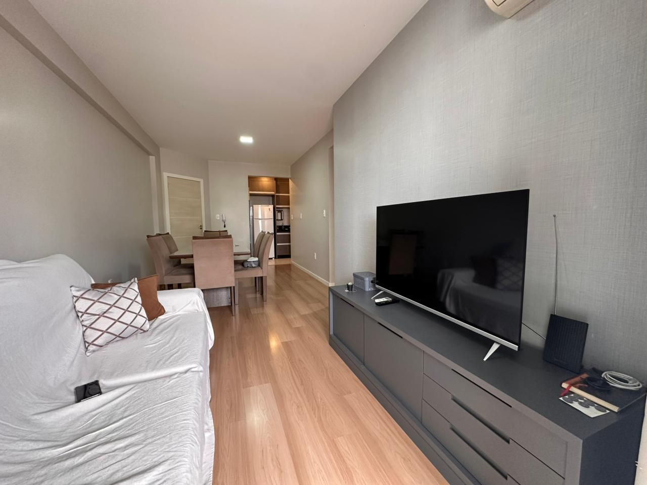 ▪️ Sala de TV com sofá, rack e ar-condicionado
