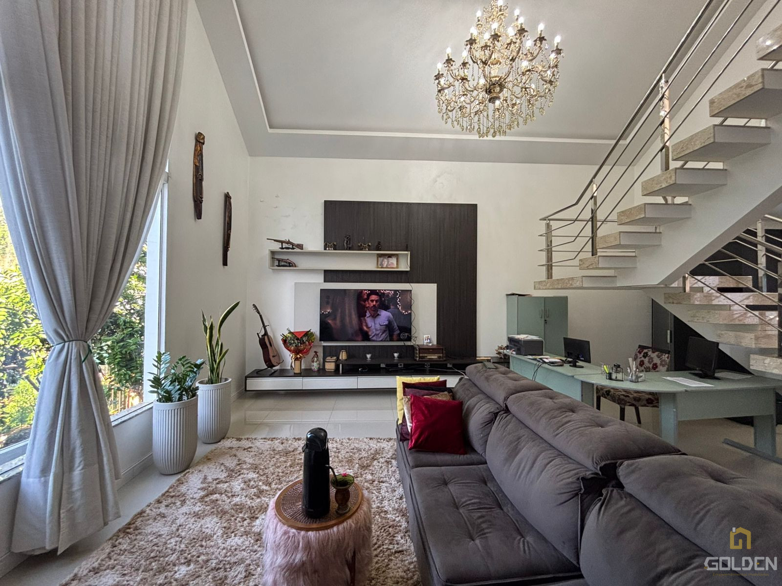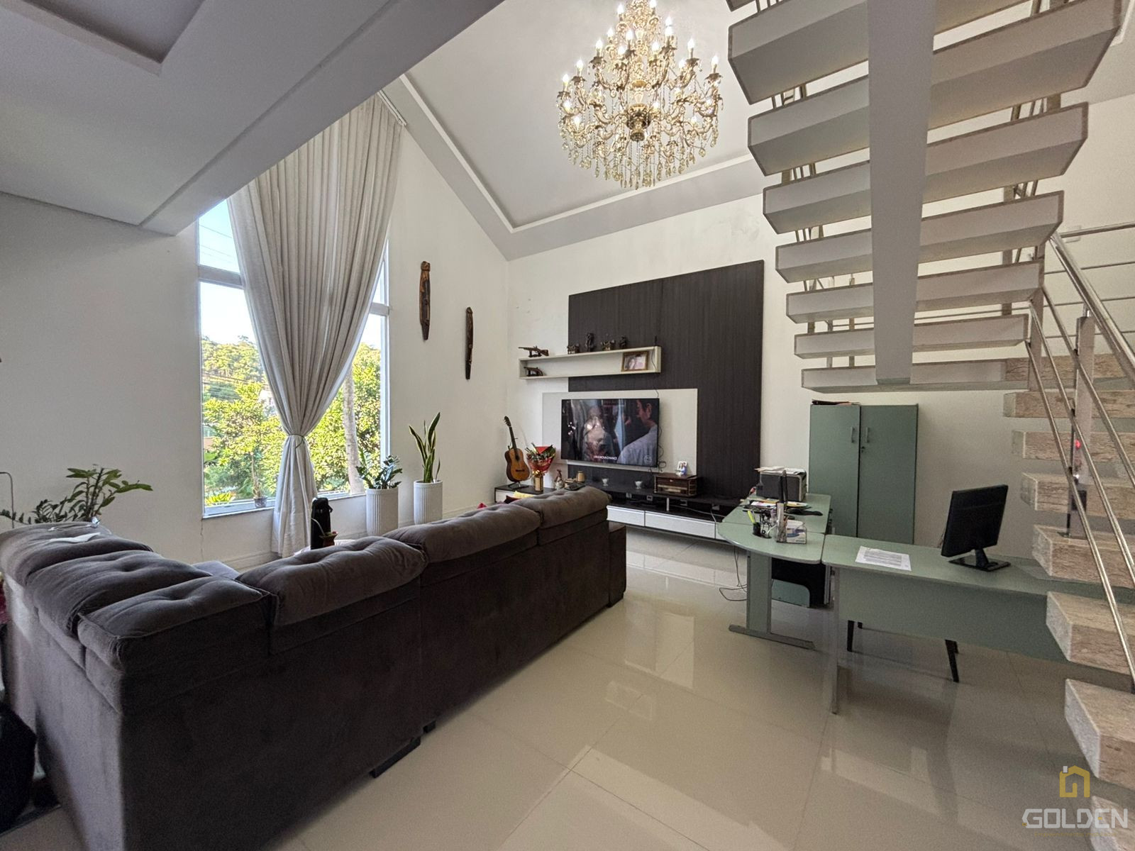 ✅ Sala de estar com pé direito duplo